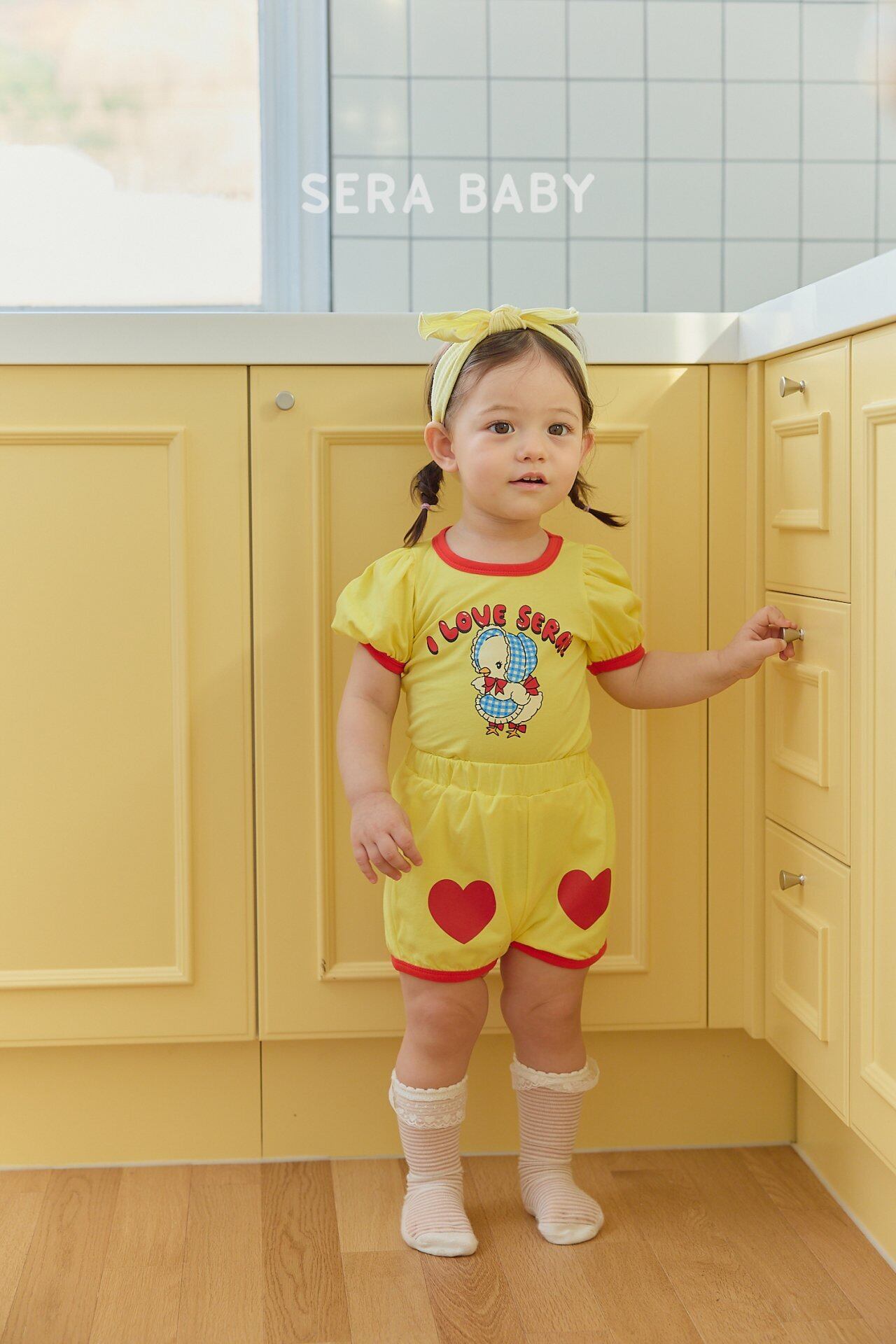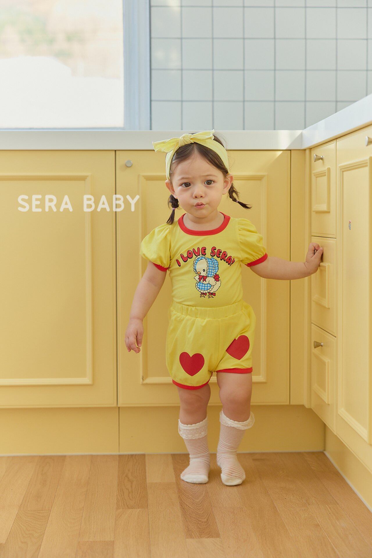 柔らかい素地で可愛いひよこさんのプリントとハートがポイントのかぼちゃパンツの上下セットです。