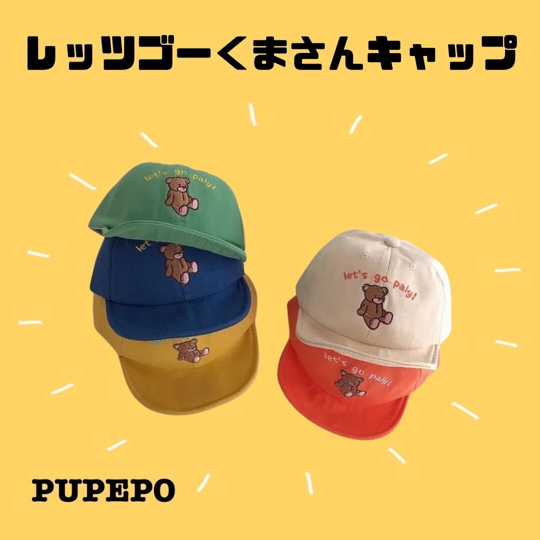 甘すぎない上品なデザインで、シンプルながらも個性的なレッツゴーくまさんキャップ。いろいろなカラーで、どんなコーディネートにも合わせやすく、使い勝手も抜群です。他のPUPEPO商品とも相性バッチリです。
