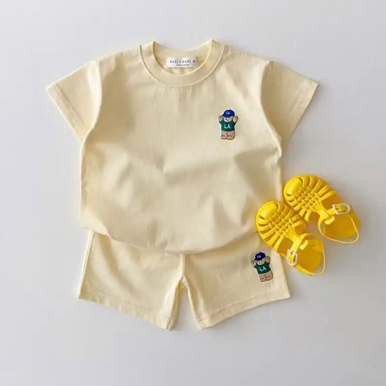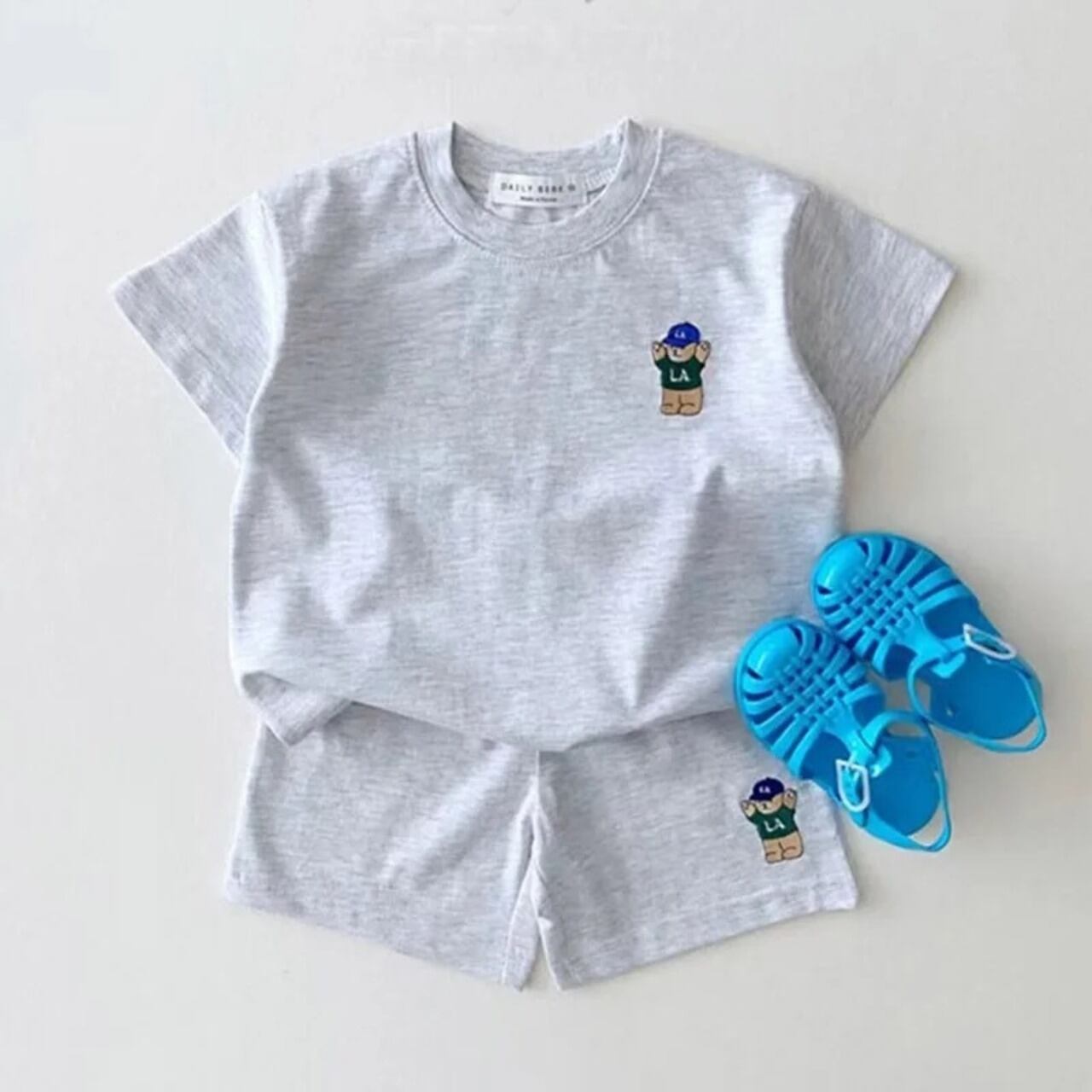 シンプルなセットアップの中にワンポイントくまさんが可愛い