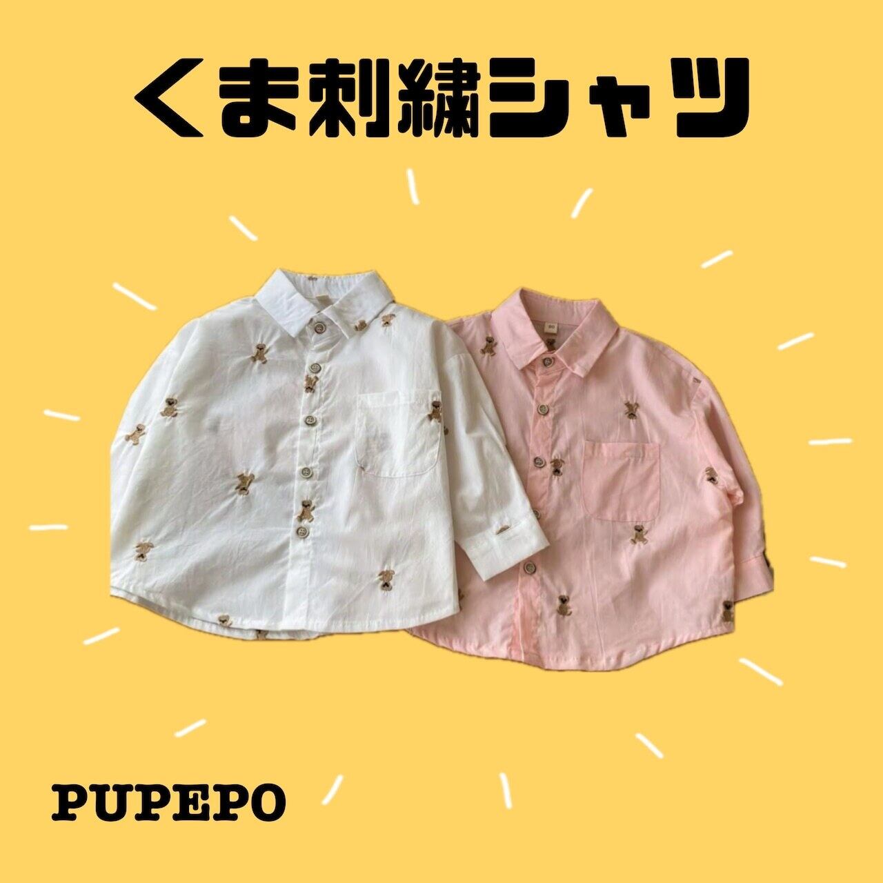 くま刺繍シャツ