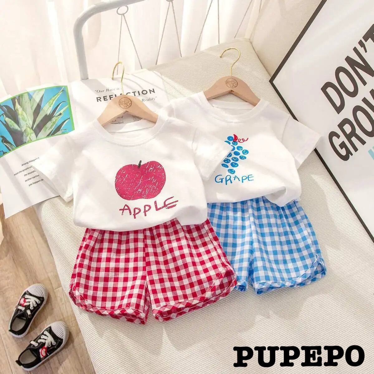 フルーツのイラストとチェックパンツがマッチしていてかわいい